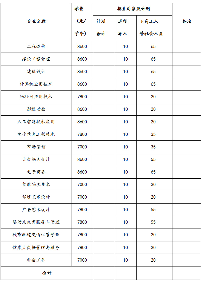 备注:扩招计划以省教育厅审核下达的计划为准。
