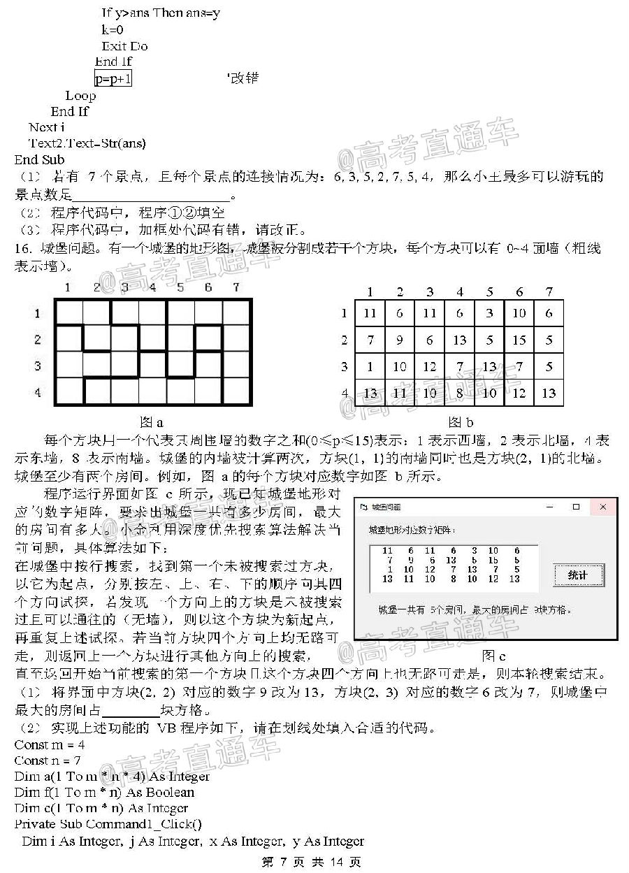 2020学年第一学期山水联盟高三12月份联考技术试题及答案