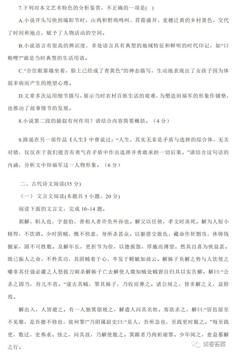 2021云贵川桂四省金太阳联考(21-11-149C)语文试题及参考答案